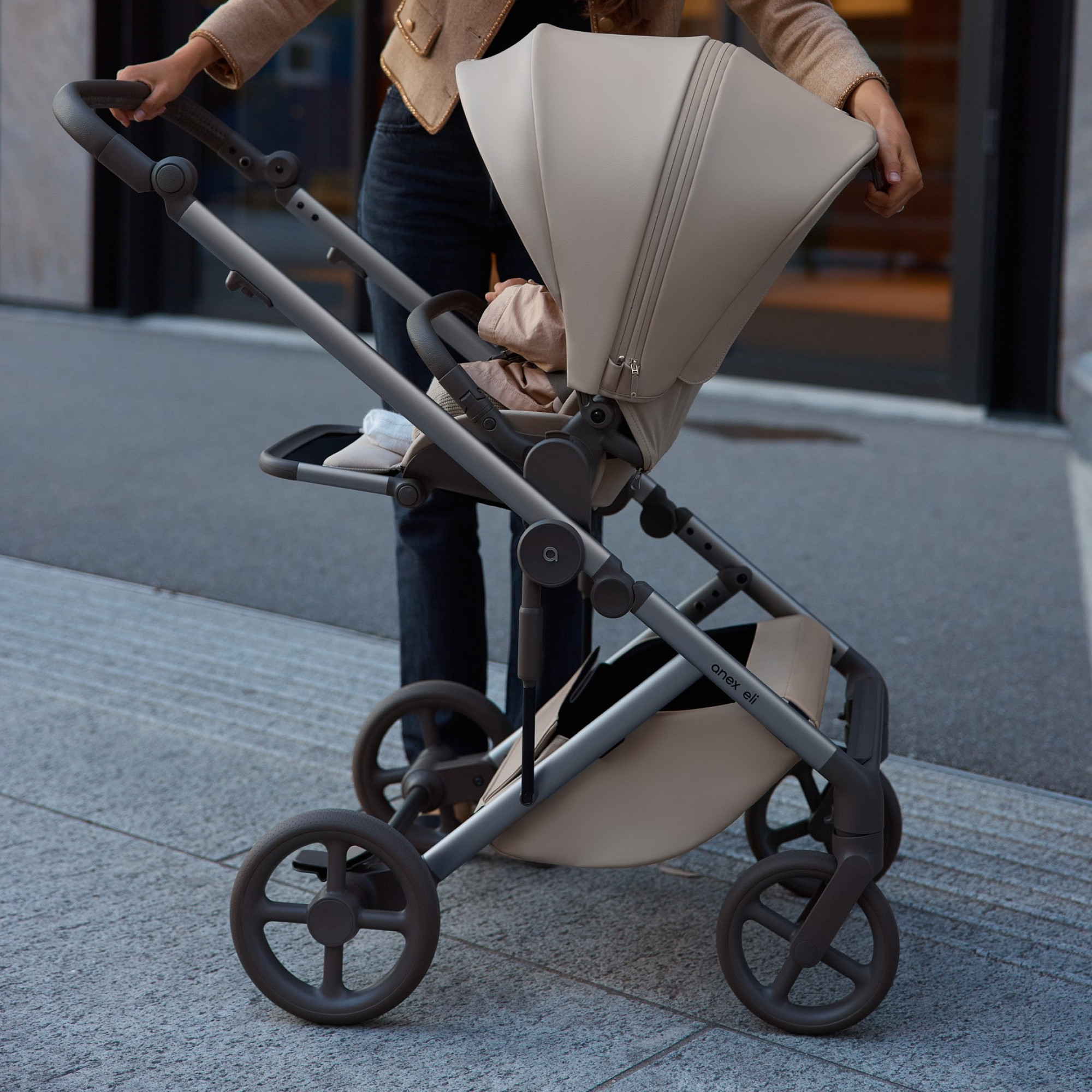 Anex Eli to wózek wielofunkcyjny 2w1 dla dzieci od urodzenia do 4 lat lub 22 kg. Wózek Anex Eli - stylowy i łatwy w obsłudze. Wykonany z materiałów klasy premium i wysokiej jakości, ekologicznych tkanin. Eli został zaprojektowany z dbałością o szczegóły i w myśl minimalistycznego podejścia do designu. Jest wyrazem celebrowania nowoczesnego rodzicielstwa poprzez pokazanie, że styl i funkcjonalność nie muszą być kompromisem.