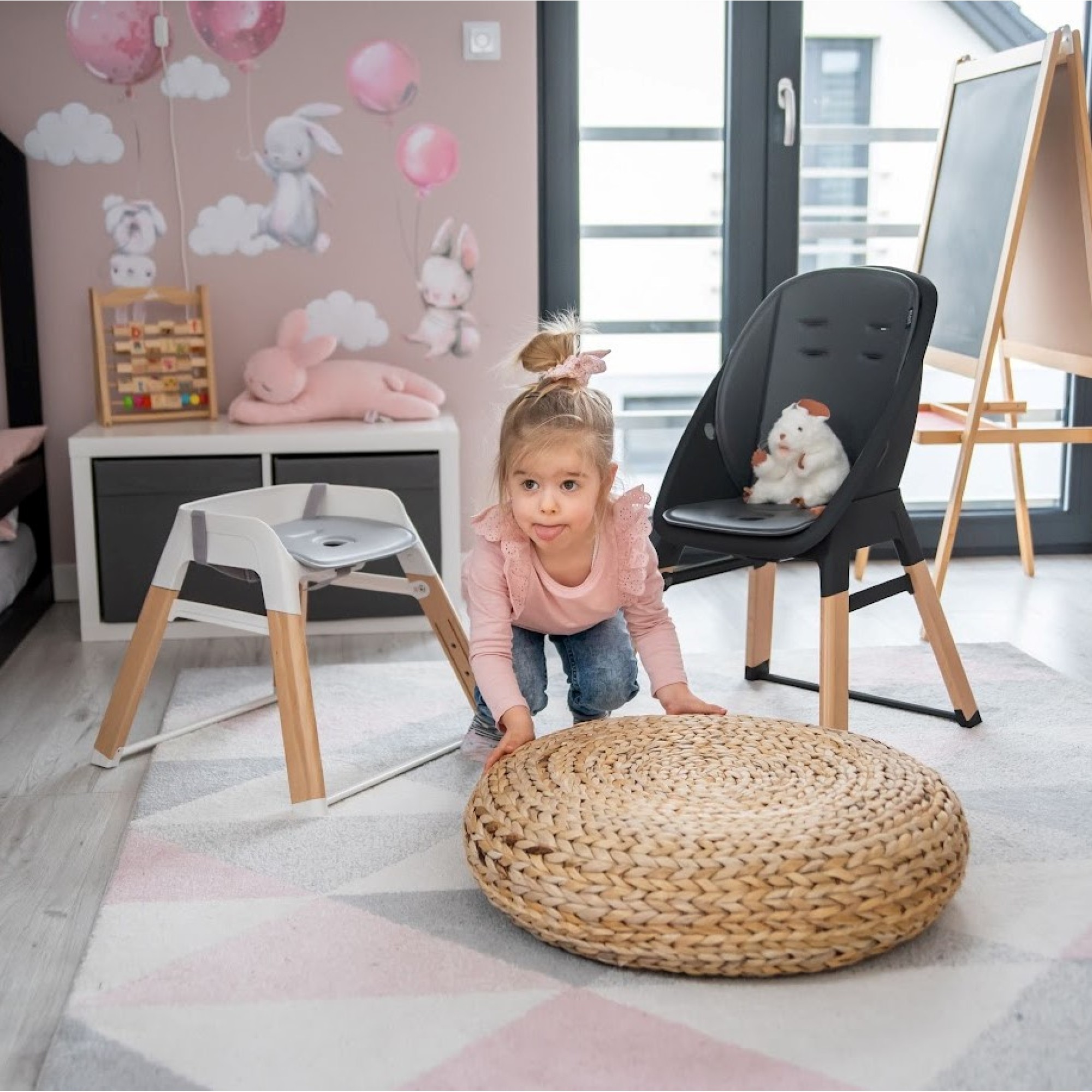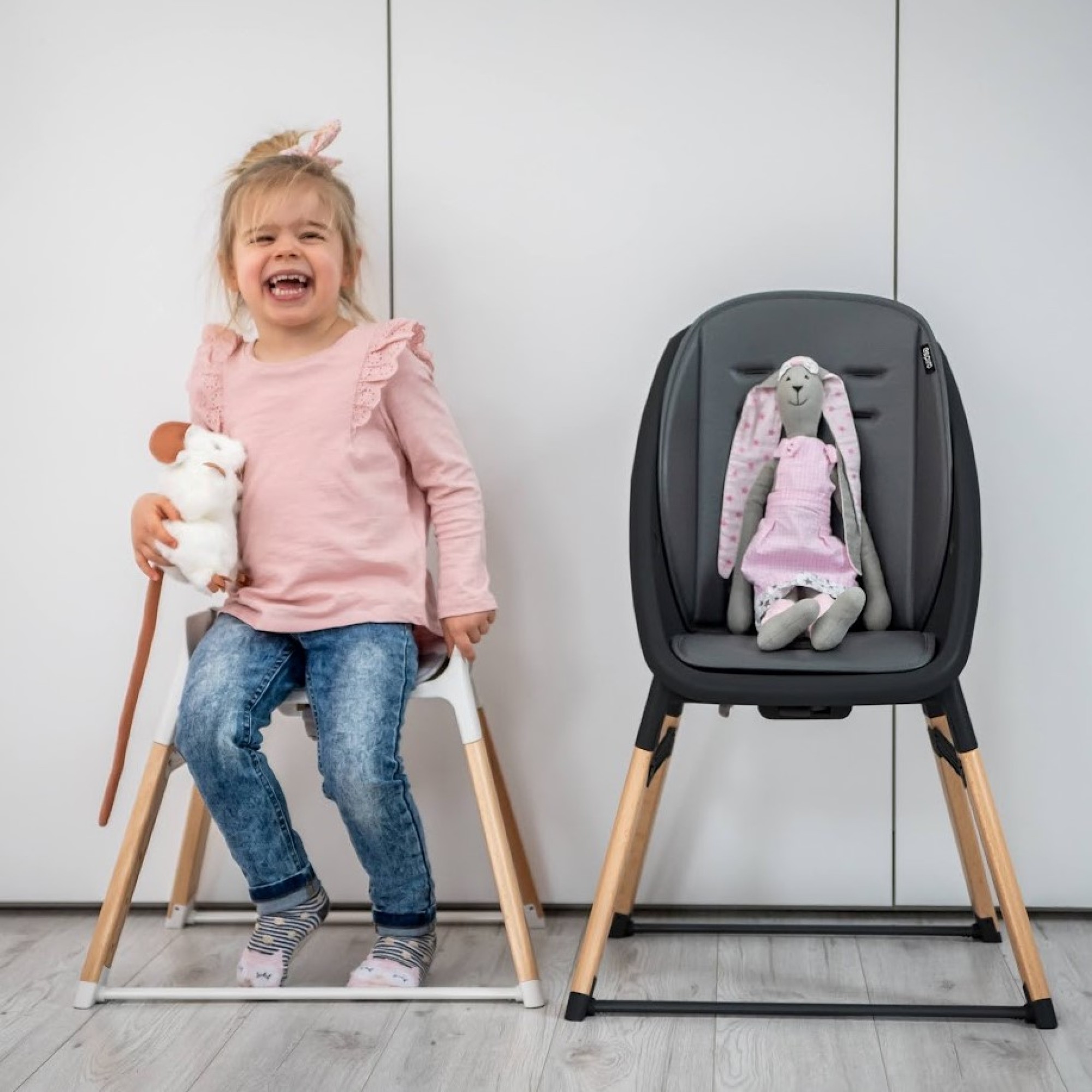 Hoker dla starszych dzieci Demontując siedzisko z oparciem, krzesełko staje się wysokim hokerem z 3 - punktowymi pasami. Taka forma krzesełka odpowiada starszym dzieciom. Większość dzieci przechodzi etap, kiedy chcą poczuć się starsze i "dorosłe". Chcą, by przedmioty, których używają nie były dedykowane dla maluchów, a dla starszych. Dzieci lubią, kiedy rodzice podkreślają, jak bardzo ich pociechy rosną i rozwijają się.