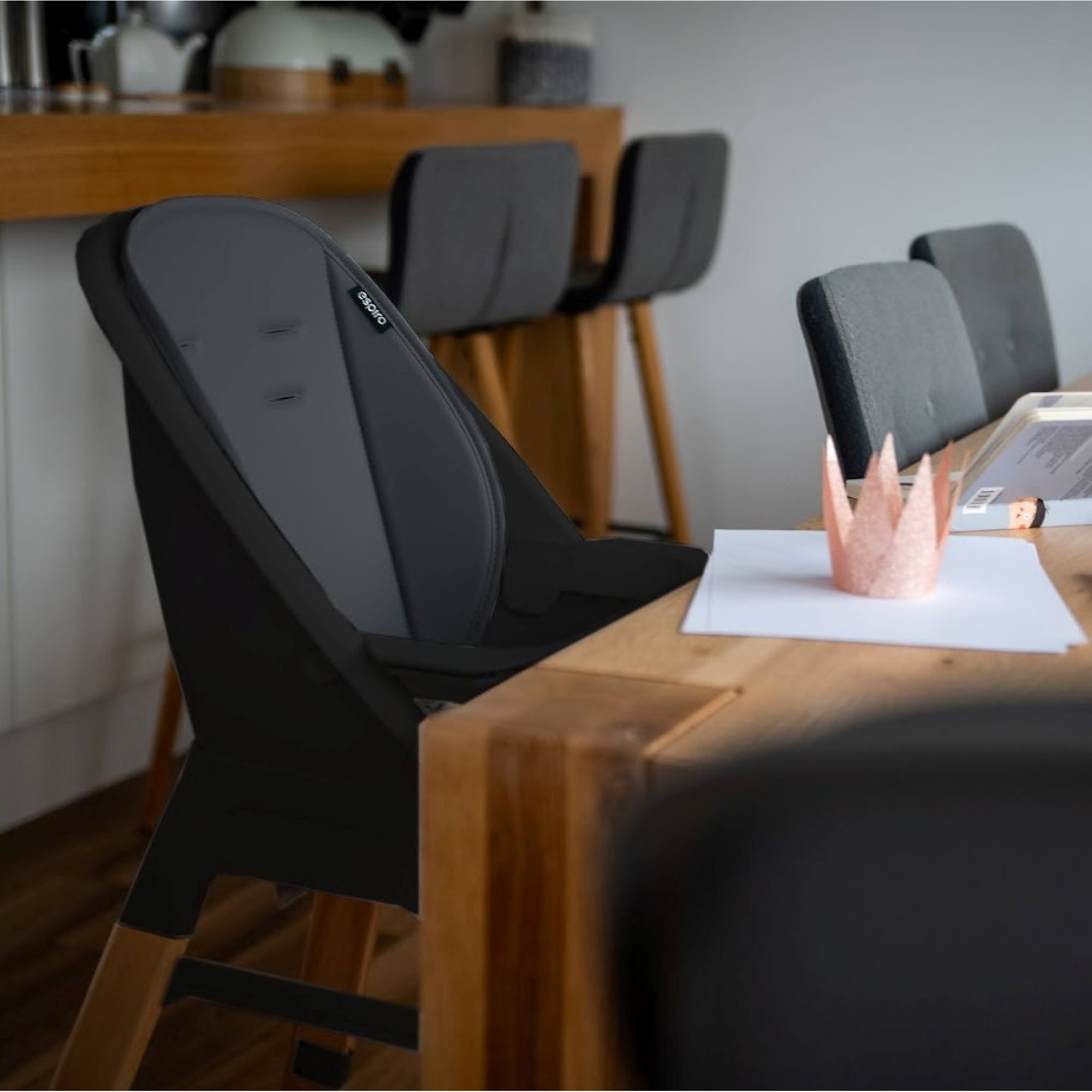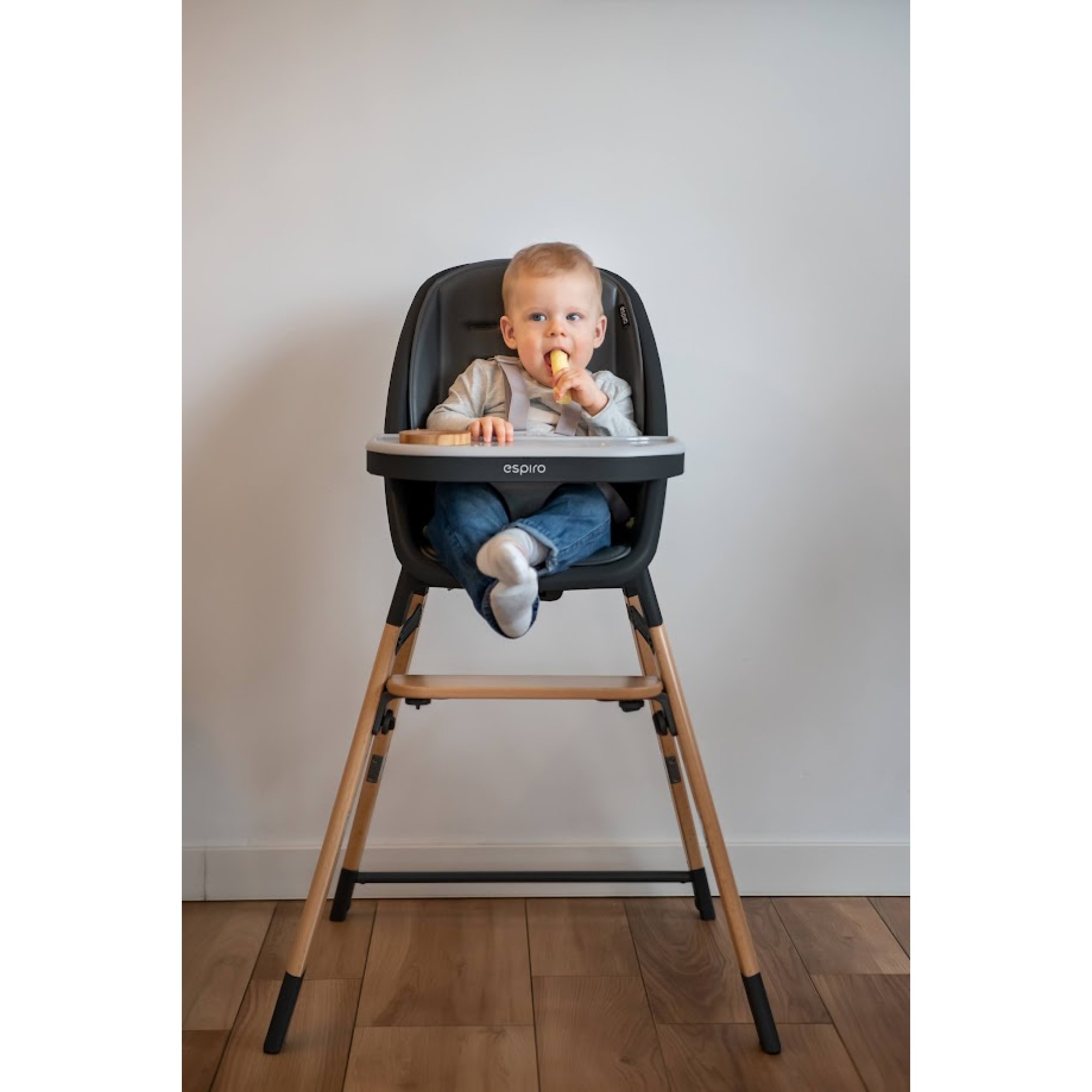 Z wysokiego krzesełka Espiro Sense łatwo zrobisz wygodny dla malucha hoker z 3 punktowymi pasami bezpieczeństwa i o maksymalnym obciążeniu do 110 kg. Powstanie w ten sposób mebel dla starszych dzieci. Hoker możesz dosunąć do stołu, aby maluch mógł jeść w „dorosły” sposób.