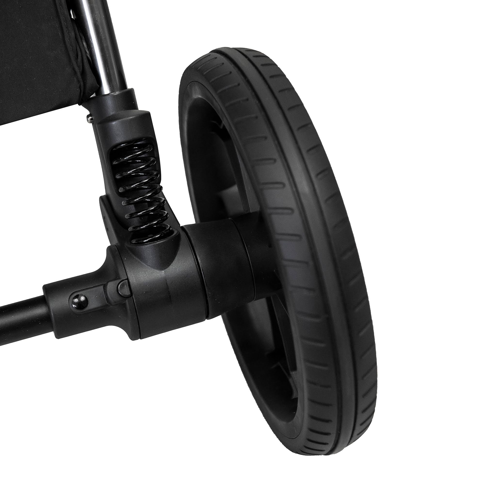 Duże koła żelowe Bezobsługowe koła ze specjalnie zaprojektowanym bieżnikiem zwiększają przyczepność na każdej nawierzchni. Wyjątkowo dobra amortyzacja wszystkich kół zapewnia płynność jazdy i maksymalny komfort codziennego użytkowania, skutecznie niwelując wstrząsy podczas spacerów po nierównym terenie.