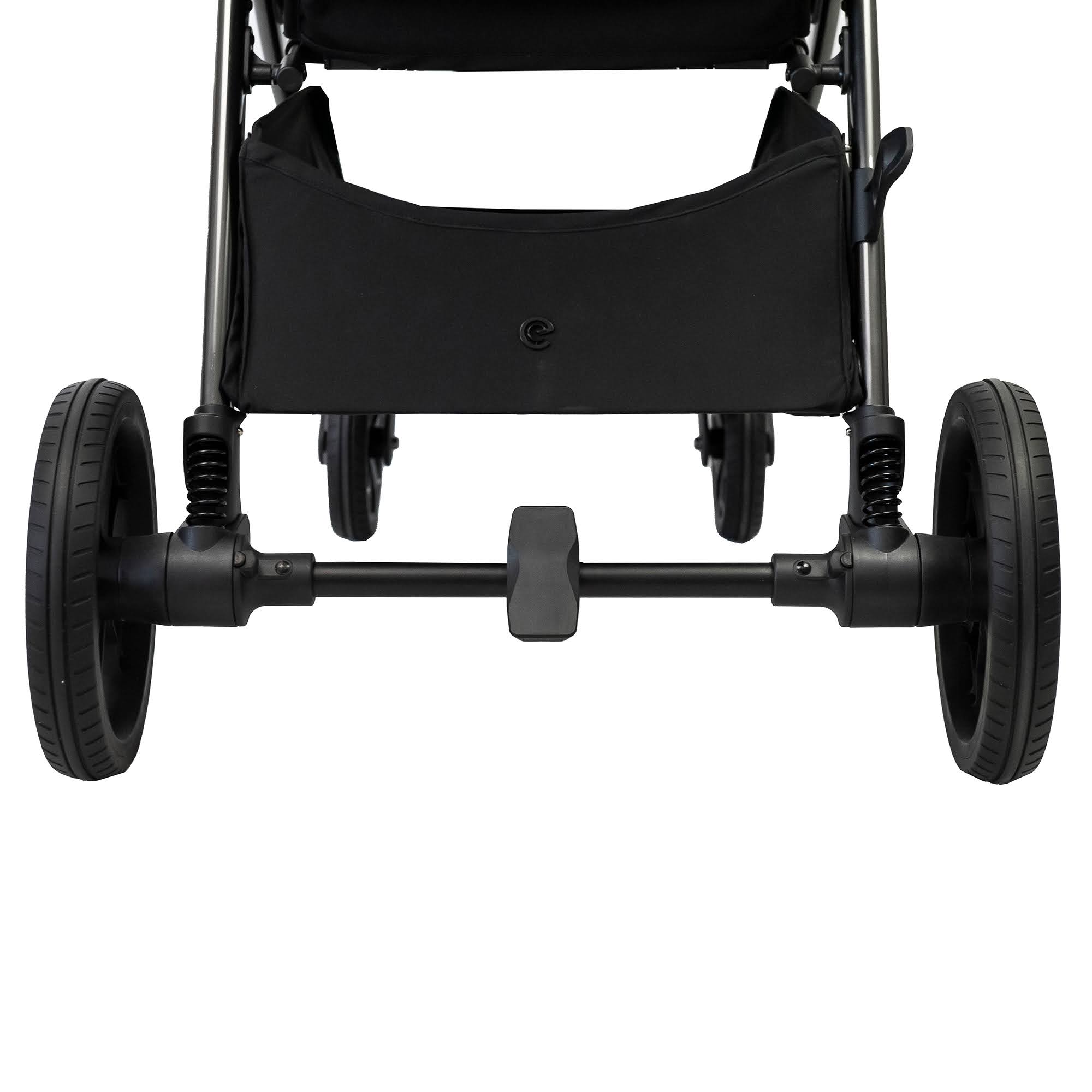 Główną zaletą Espiro Wind jest system autofolding, pozwalający na błyskawiczne złożenie wózka jedną ręką. Anodowana rama w kolorze ciemnego chromu, detale z wysokiej jakości ekoskóry oraz geometryczne przeszycia na siedzisku podkreślają nowoczesny i prestiżowy charakter modelu.