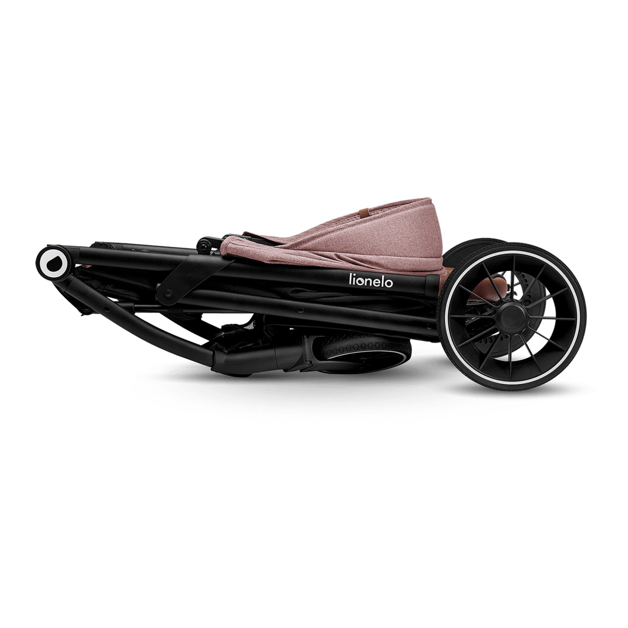 Wygodne składanie i praktyczne dodatki Wózek Lionelo Alexia Pink Rose jedną ręką złożysz do kompaktowych rozmiarów. Z łatwością wniesiesz go po schodach, przechowasz lub przewieziesz w niewielkim bagażniku. W czasie transportu nie musisz się obawiać, że konstrukcja przypadkiem się rozłoży — producent zadbał o automatyczną blokadę. W zestawie otrzymasz: moskitierę, pokrowiec na nóżki i uchwyt na kubek lub butelkę.Wymiary:
