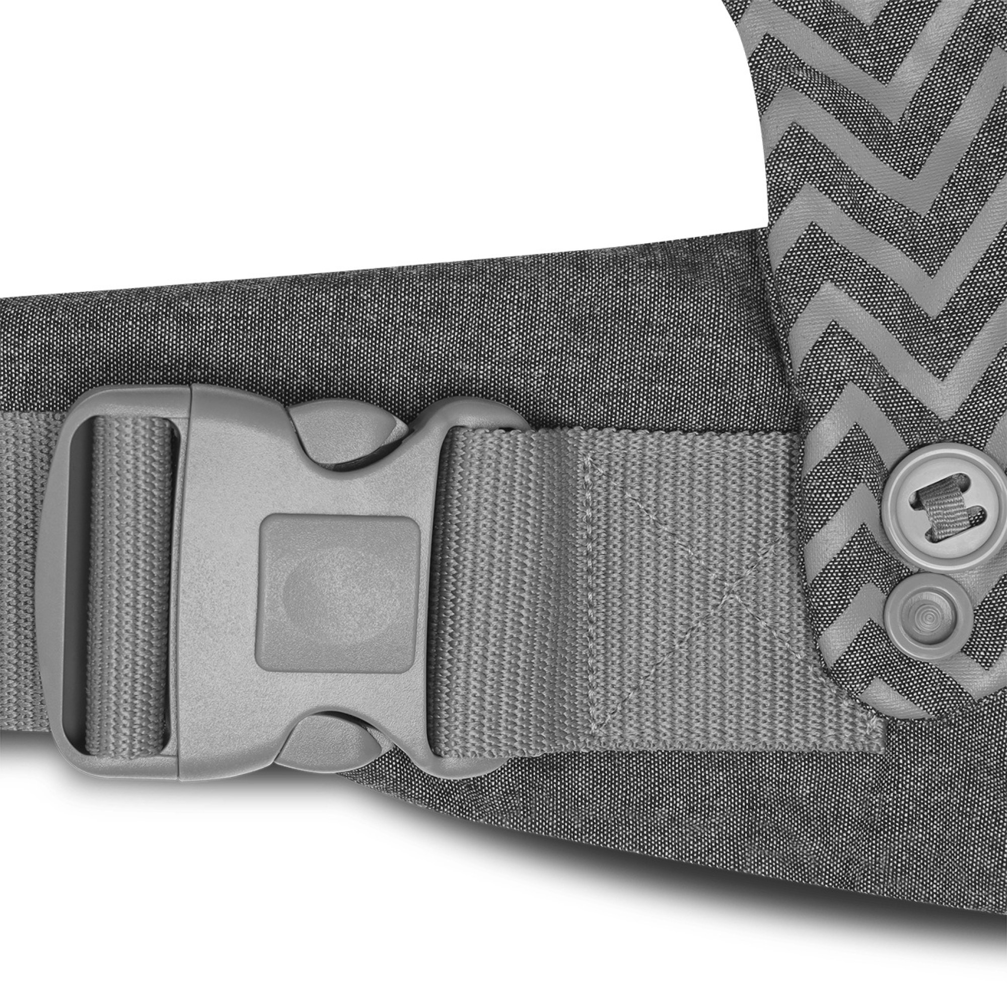 Regulacja pasków Dostosuj długość szelek i szerokość pasa, aby nosidło Lionelo Margareet było wygodne także dla Ciebie. Klamra z podwójnym zabezpieczeniem utrzymuje całość, dając gwarancję bezpieczeństwa, co potwierdziły testy w laboratorium TÜV SÜD.