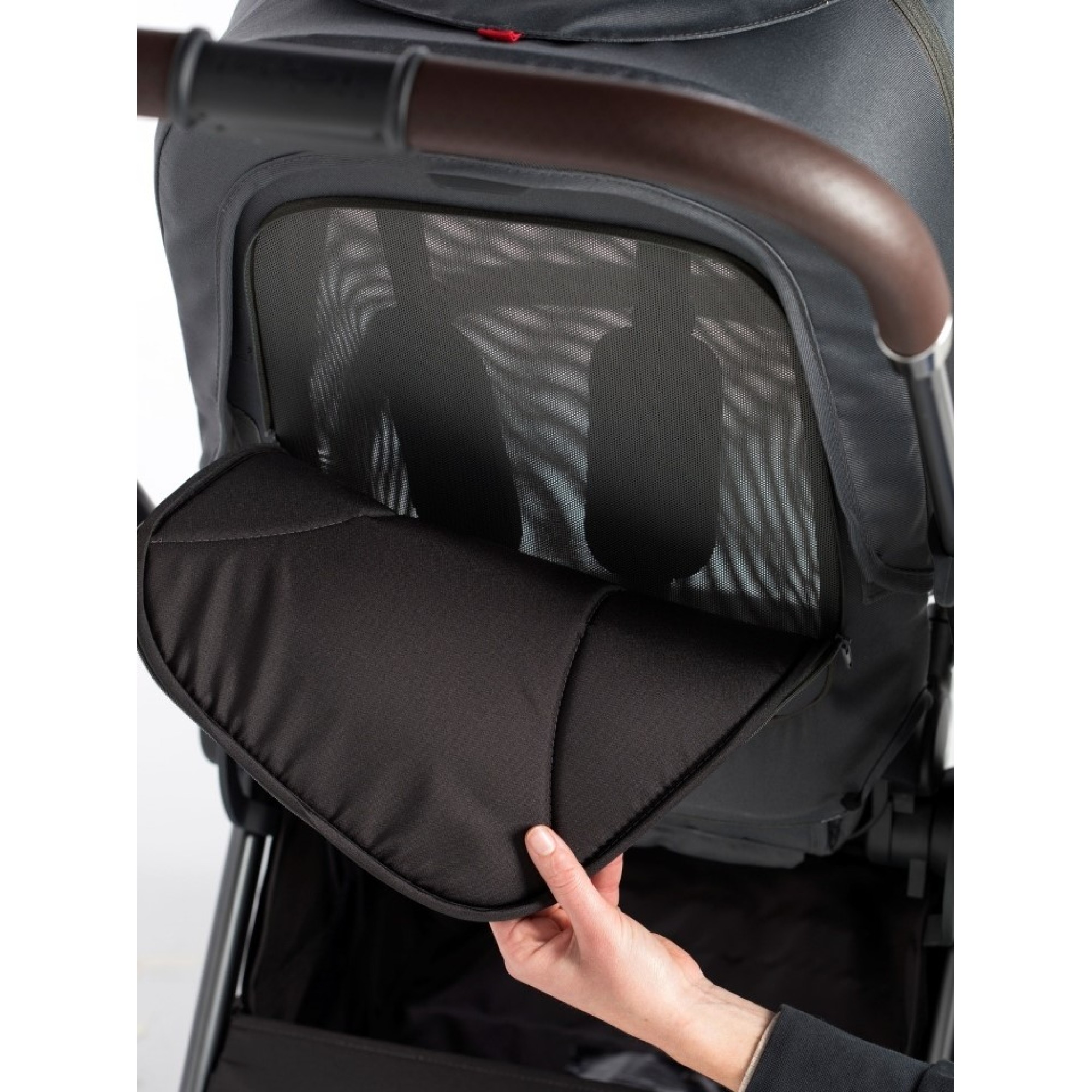 Komfort dziecka Przekładane siedzisko pozwala wybrać kierunek jazdy: przodem do rodzica lub do świata. Obszerne wymiary (30×23 cm) i wysokie oparcie 56 cm zapewniają wygodę także starszym dzieciom. Pięciopunktowe pasy z miękkimi otulinkami dbają o bezpieczeństwo i komfort.
