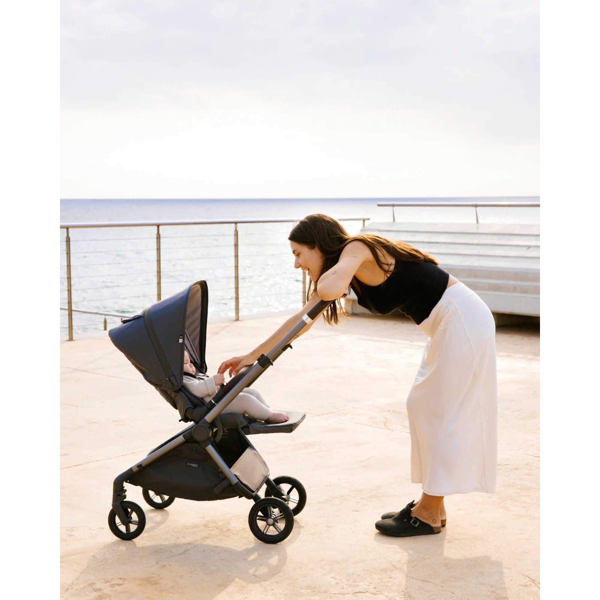 Rączka teleskopowa i rama Rączka teleskopowa regulowana w zakresie 91–105 cm umożliwia wygodne prowadzenie rodzicom o różnym wzroście. Anodowana rama jest trwała, odporna na zarysowania i dodaje eleganckiego charakteru spacerówce.