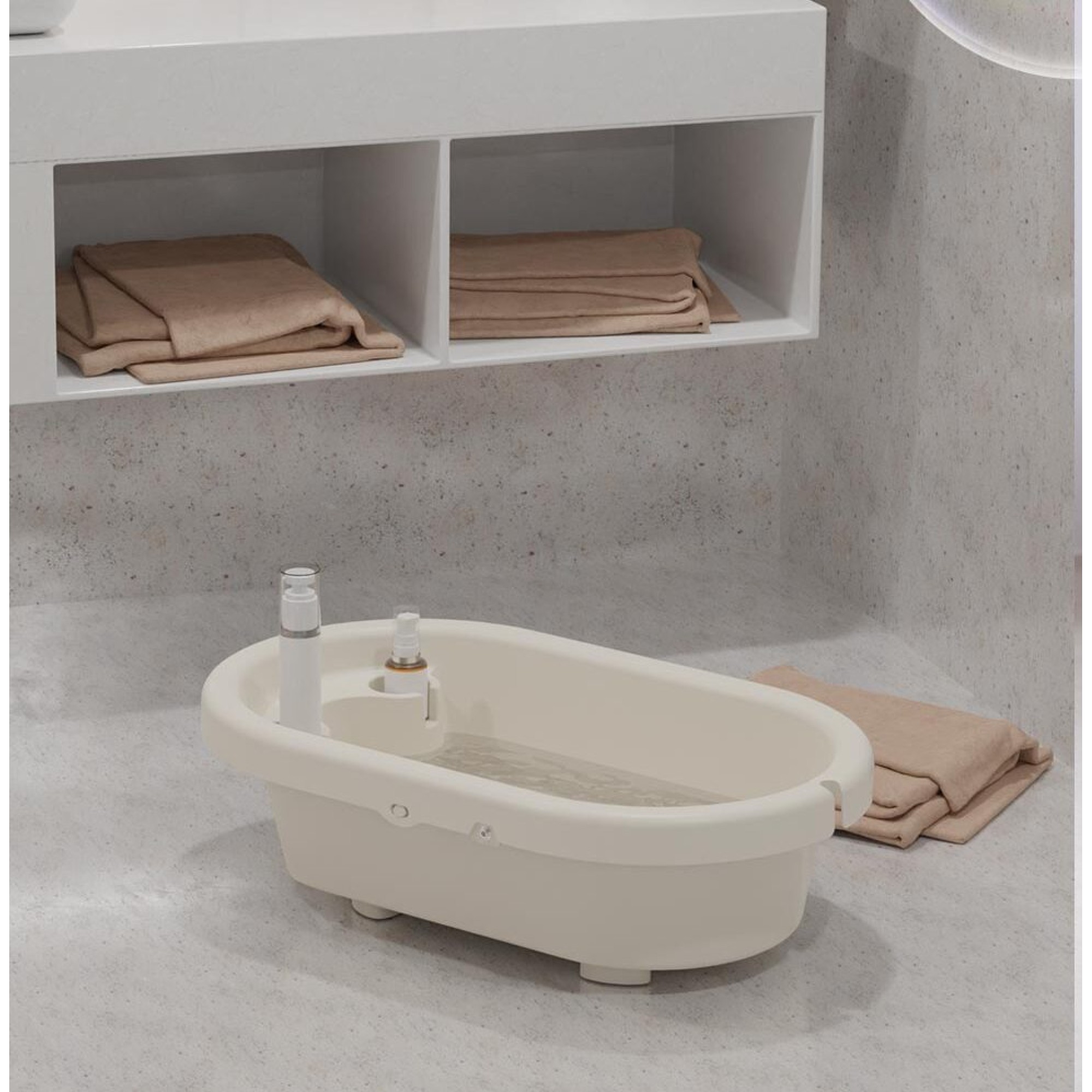 Stabilny, stalowy stelaż ma dobrze dobraną wysokość, dzięki czemu chroni plecy rodzica. Materiał jest wodoodporny i łatwy w czyszczeniu. Wanienka Neno Breza składa się bez trudu, a samą wanienkę Neno Breza można używać osobno. Neutralna beżowa kolorystyka i minimalistyczny design sprawiają, że pasuje do każdego wnętrza.