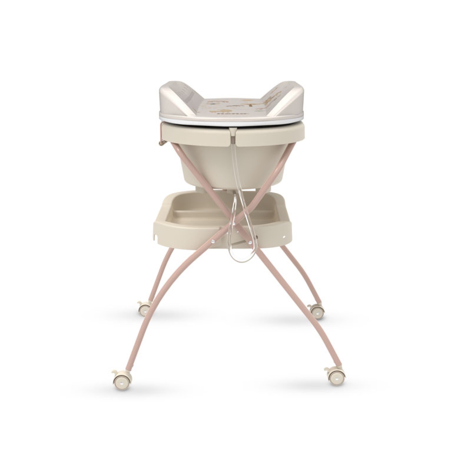 wanienka ze stelażem i przewijakiem 2w1 dla dzieci do 15 kg, łatwe składanie, 4 kółka z blokadą • Beżowy