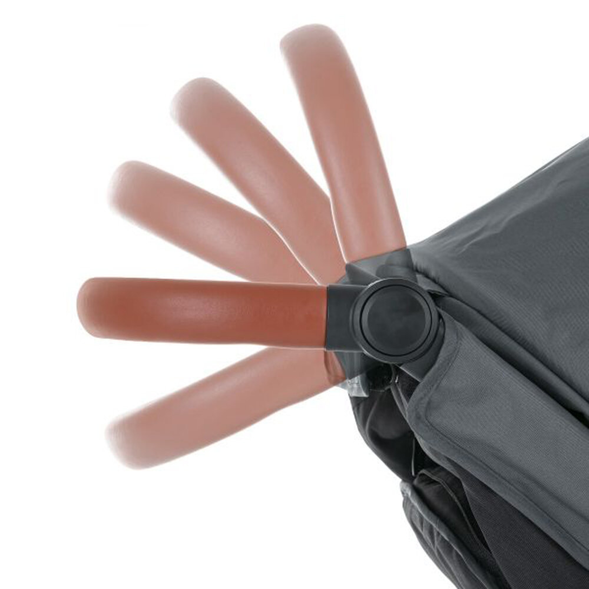Duża rozsuwana budka Duża rozsuwana budka posiada ochronę przeciwsłoneczną na poziomie SPF50+. Moskitiera z tyłu budki pozwala na lepszą cyrkulację powietrza.