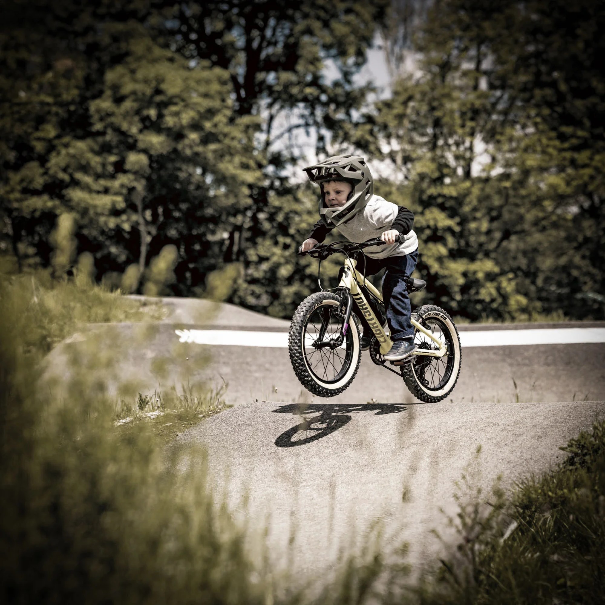 Stylowe opony typu Skinwall nie tylko świetnie wyglądają, ale przede wszystkim oferują doskonałą przyczepność na asfalcie, żwirze и leśnych ścieżkach. Dzięki nim dziecko czuje się stabilnie niezależnie od rodzaju podłoża.