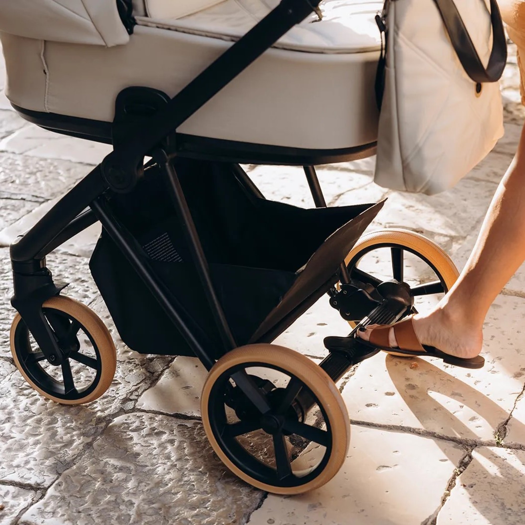Piankowe i łożyskowane koła przednie i tylne piankowe, nieprzebijalne, opony niskoprofilowe. Miękkie zawieszenie zapewnia płynną jazdę nawet po nierównych drogach. Wózek dziecięcy Roan IVI 2.0 Vintage łatwo się składa i mieści w bagażniku samochodu.