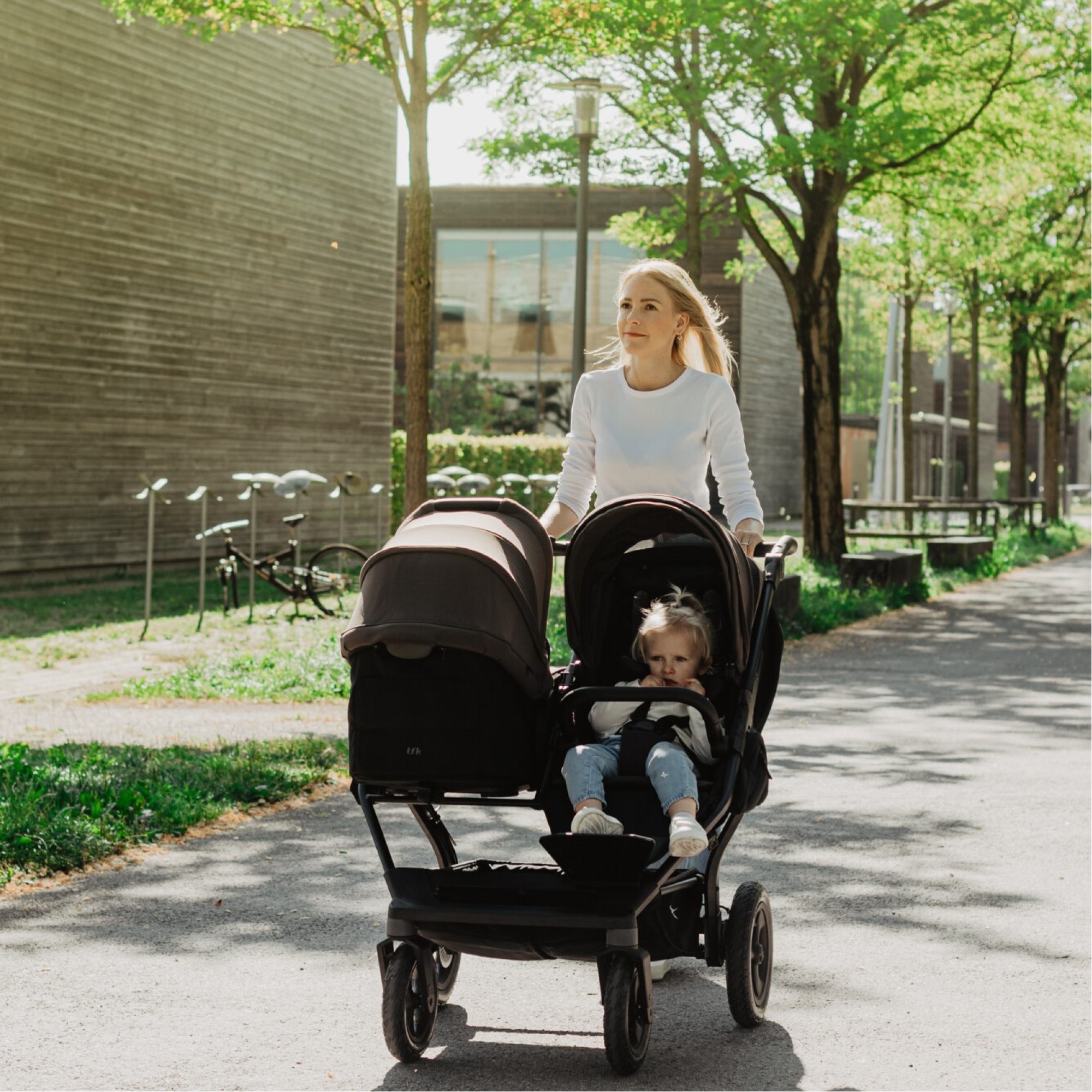 Wózek bliźniaczy jeden obok drugiego TFK Duo 2 Combi to konsekwentny dalszy rozwój i wynik dziesięcioleci doświadczenia, opracowany i zaprojektowany przez rodziców dla rodziców. Używane są wyłącznie przetestowane i certyfikowane materiały, a wszystkie nasze modele przechodzą obszerne testy TÜV.
