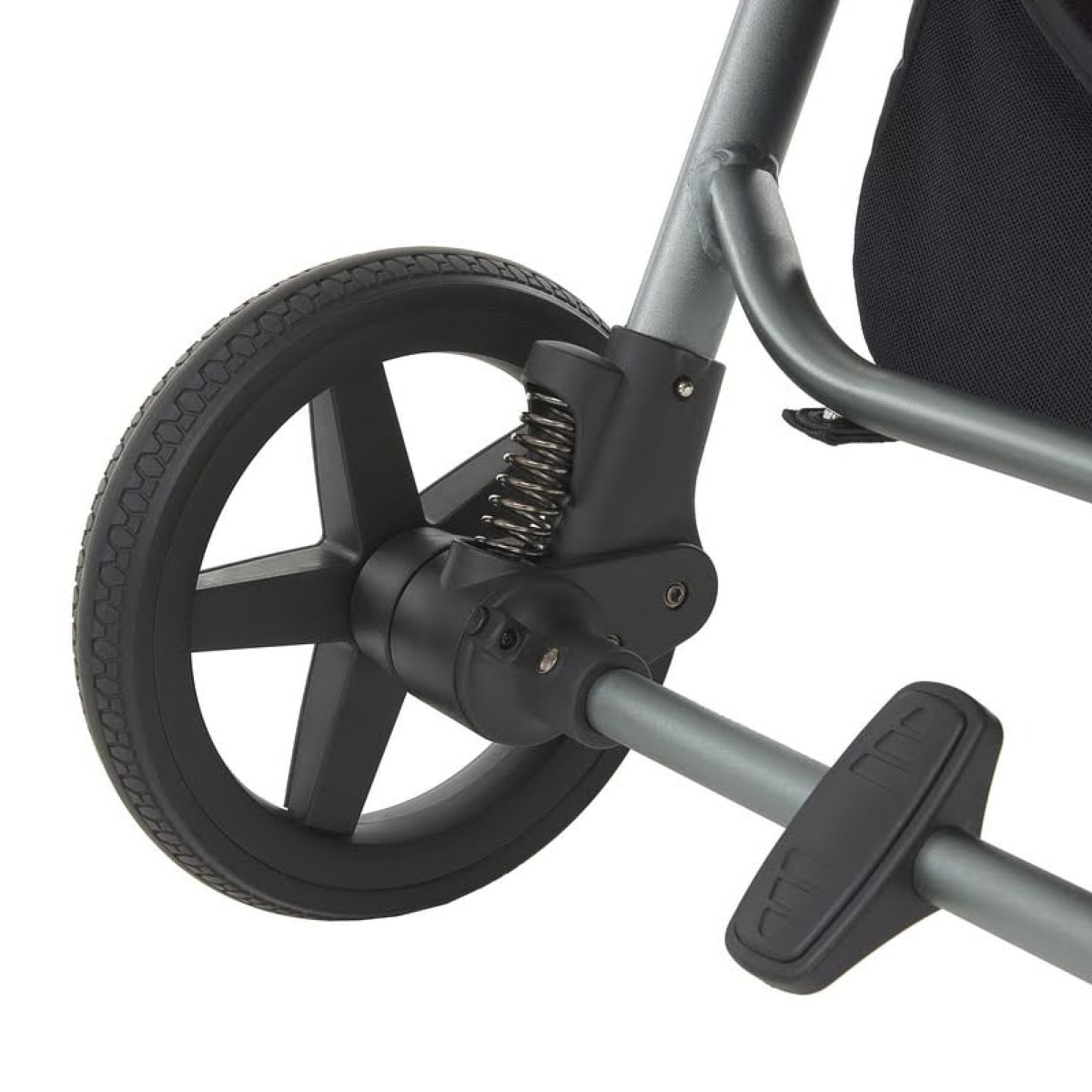 Колеса та амортизація Надзвичайно міцні, якісні, не потребують обслуговування колеса, ідеально імітують надувні колеса (по еластичності і поведінці на поверхні). Відмінна амортизація - головна перевага цієї моделі. Завдяки їм водіння коляски навіть по піщаним, нерівним і ґрунтовим дорогам принесе вам і вашій дитині задоволення.