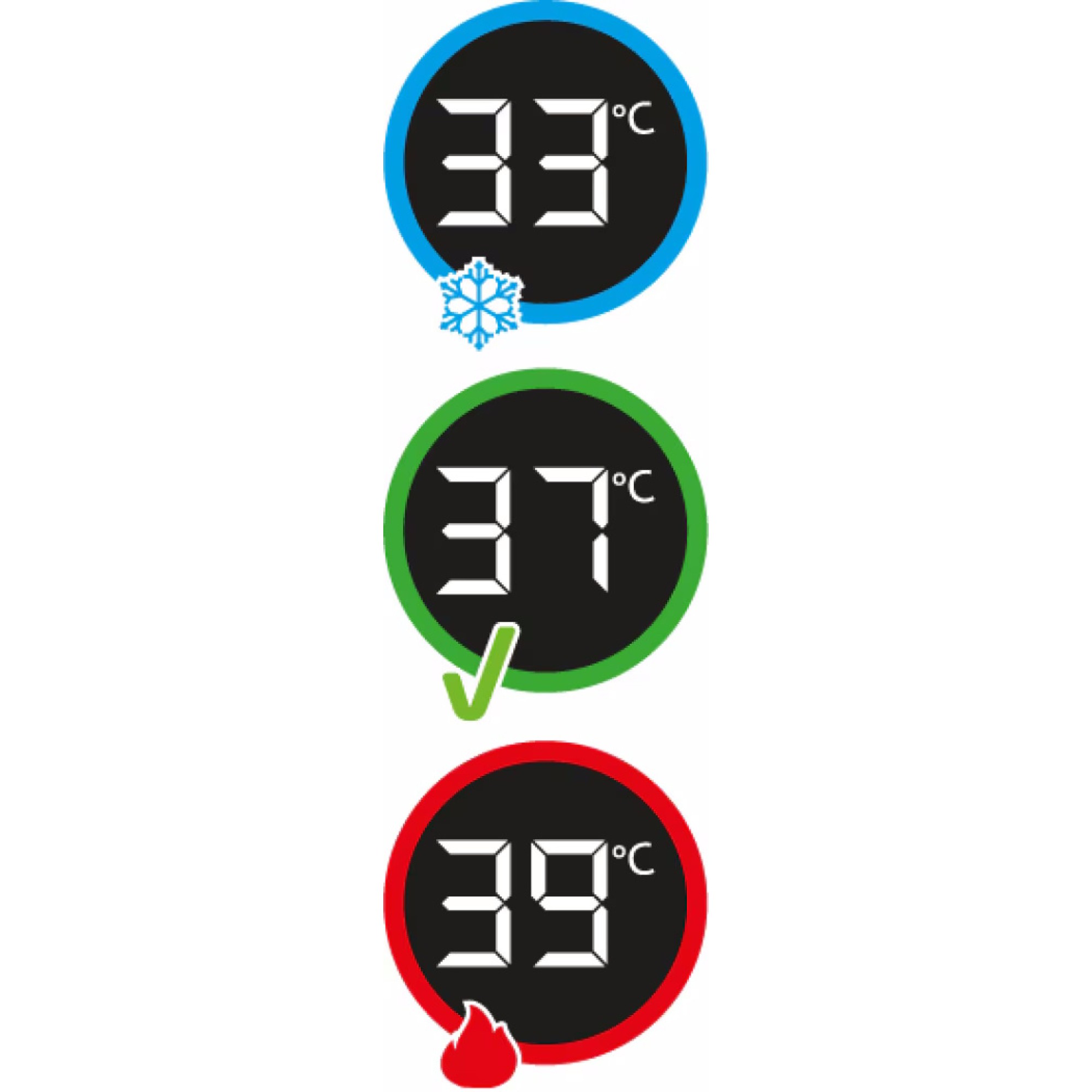 Інтегрований термометр HighSense Вбудований у ванночку термометр HighSense забезпечує точні показники в нижній частині, де вода найтепліша. Зелене коло сигналізує про відповідну температуру.