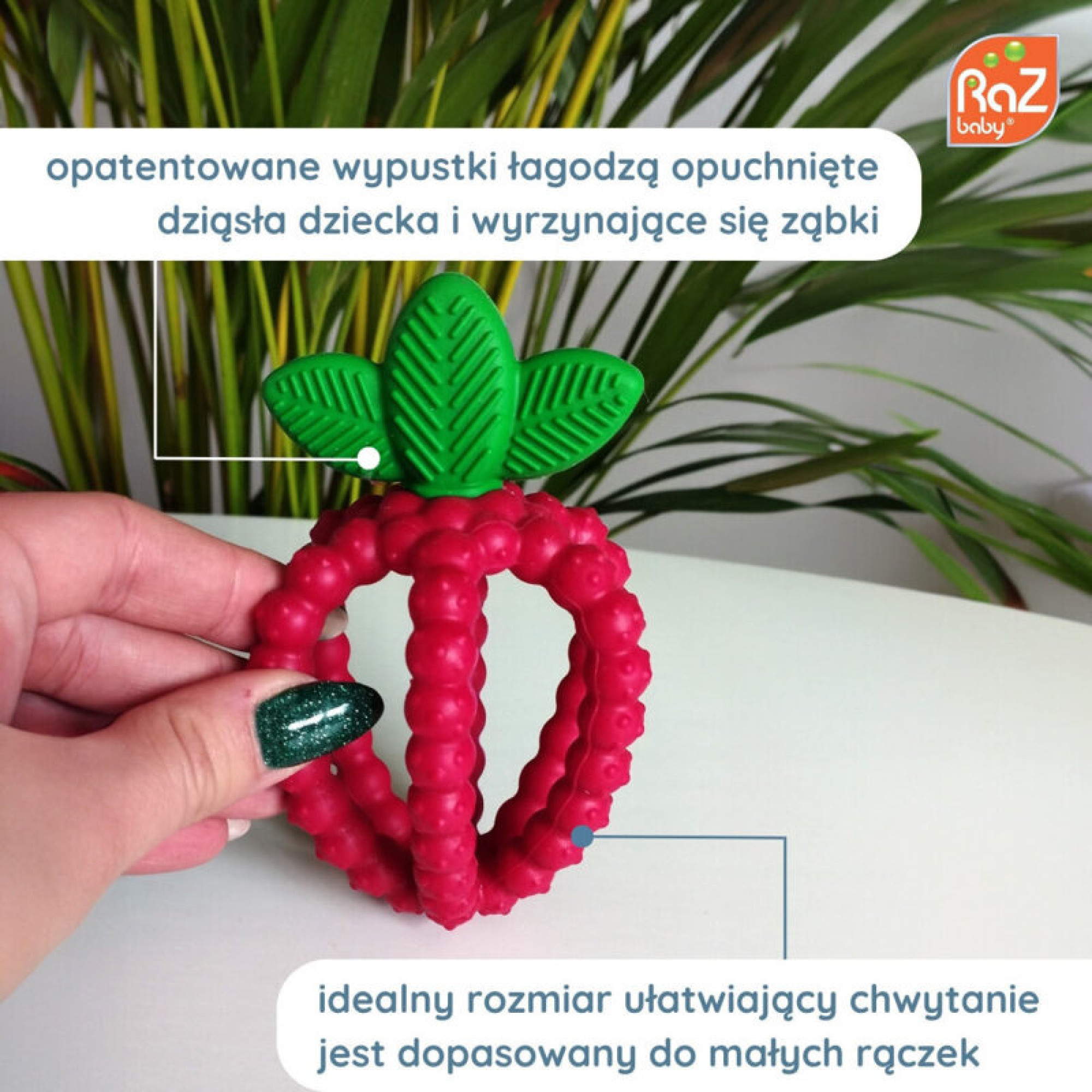 RaZbaby - Силіконовий прорізувач, Соковита Малина з листочками, рожевий