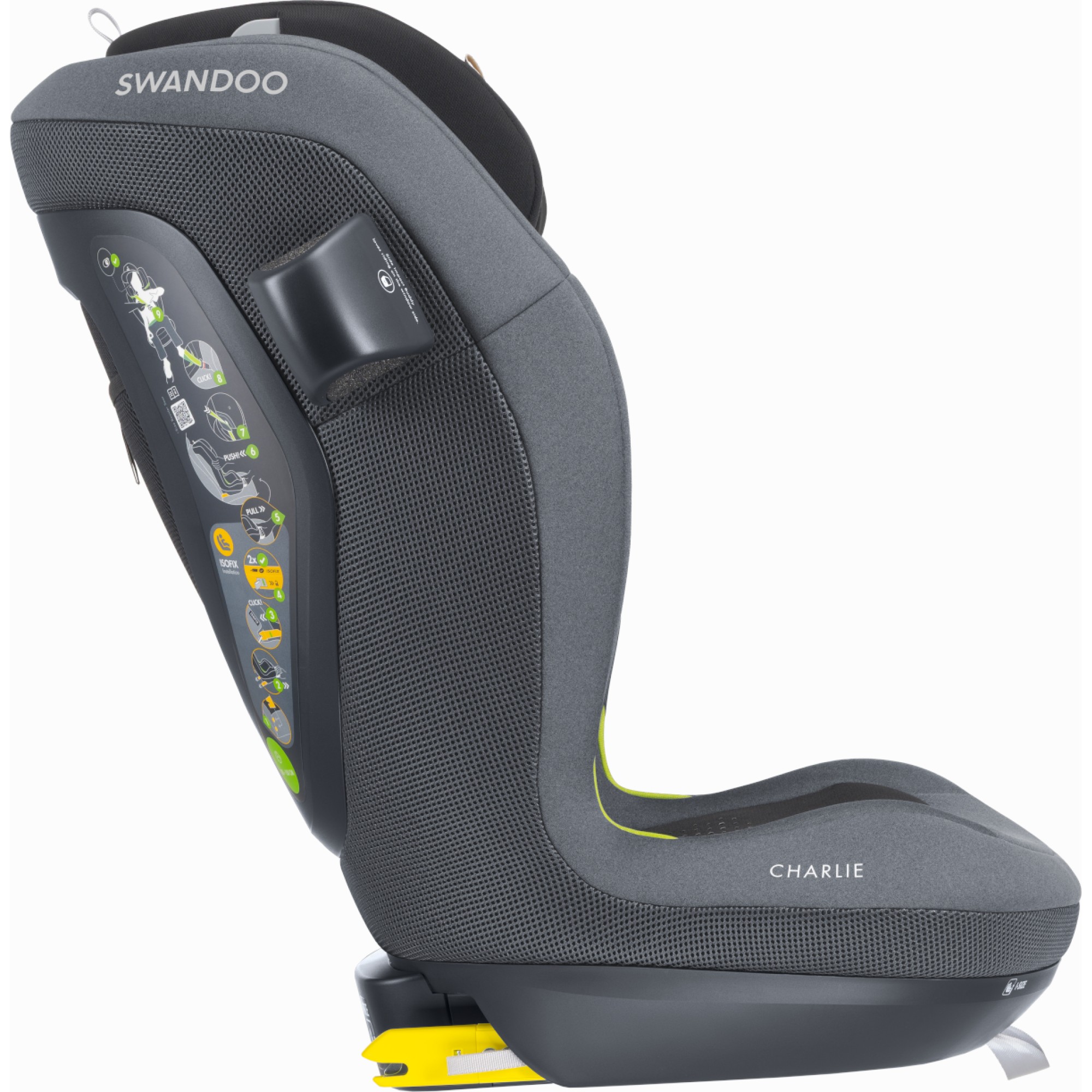 Swandoo Charlie — дитяче автокрісло i-Size для дітей зростом від 100 см (~3 роки) до 150 см (~12 років). Автокрісло інтуїтивно зрозуміло та дуже просте у використанні, тому ваша дитина може швидко навчитися захищати себе, що додасть їй впевненості та спокою.