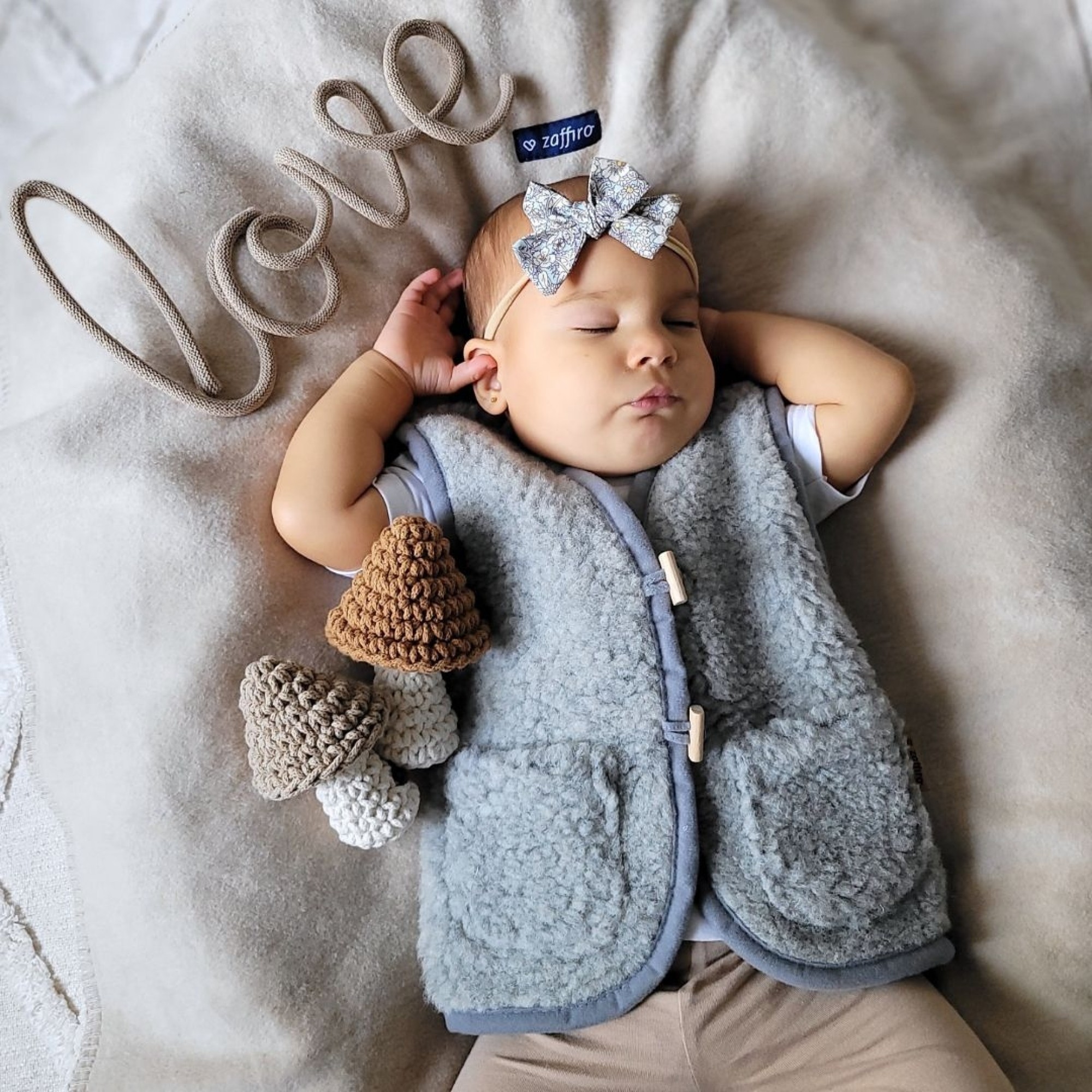 Klasyczny krój i zapinanie na drewniane guziczki dodają kamizelce uroku w stylu vintage i sprawiają, że łatwo się ją zakłada i zdejmuje – nawet w biegu! Dzięki szerokiej rozmiarówce – kamizelka rośnie razem z dzieckiem, towarzysząc mu przez kilka sezonów.